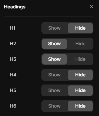 There's a list of all the headings and you can choose which to include and which to hide.