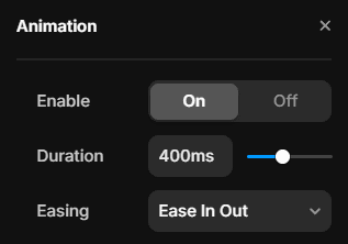 Enable or disable them, set the duration and easing options.
