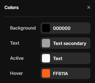 Tweak colors of the background, primary text, active text and hover.